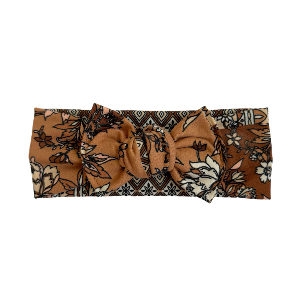 Brown Patchwork - Bow Headband