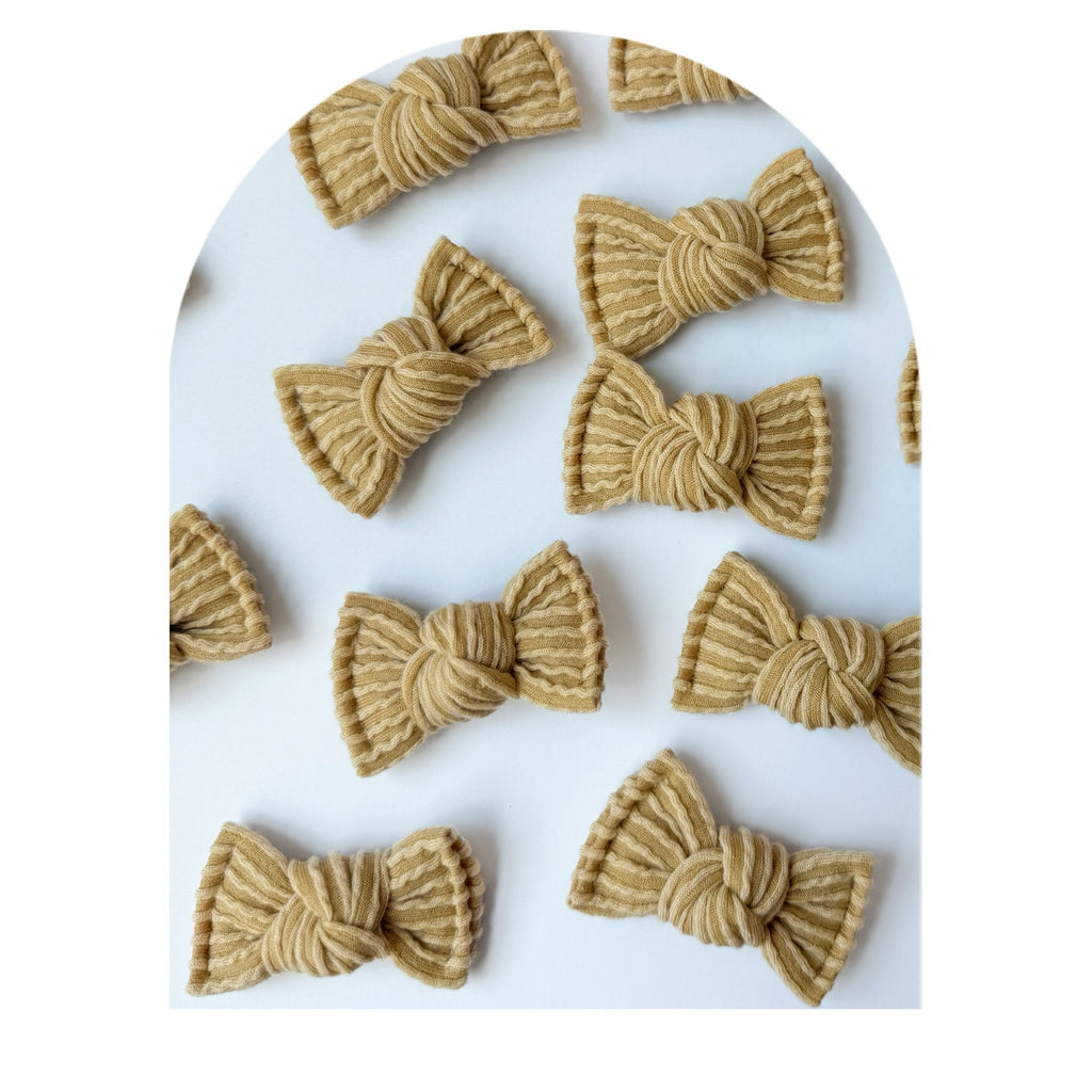 Our Micro Knotted Bows are roughy 2-2.5” (fabric type can make the size vary about half an inch)