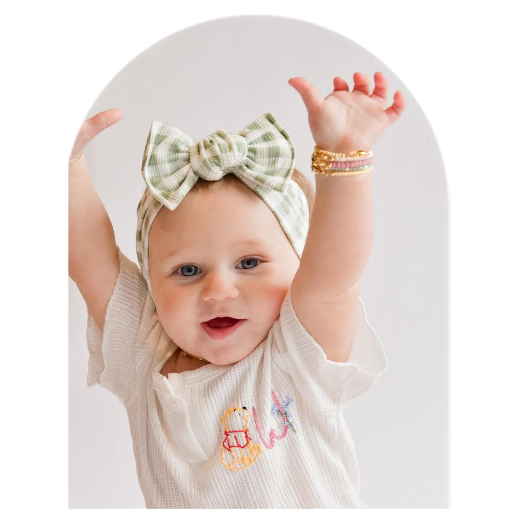 A Gentle Reminder: For your little one’s safety, please be sure headbands and turbans are only worn with adult supervision. We recommend removing accessories during car seat rides and anytime your child isn’t being closely watched. 💕
